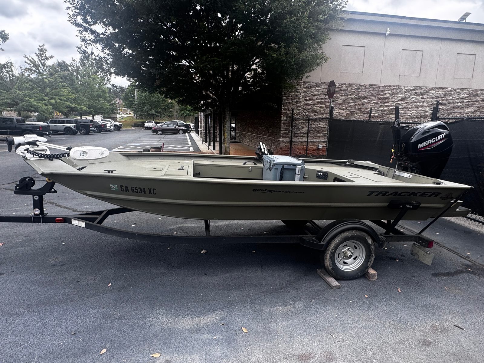 Here’s a like new 2024 Tracker Grizzly 1654 Sportsman powered by a Mercury 40 and only 5 hours. This boat has only been used in freshwater on Lake Allatoona. It is 17’4” all aluminum welded Jon boat complete fitted for duck hunting for fishing. It comes equipped with a lockable bow storage locker and removable gun box. It is the perfect shallow water fishing or river boat.