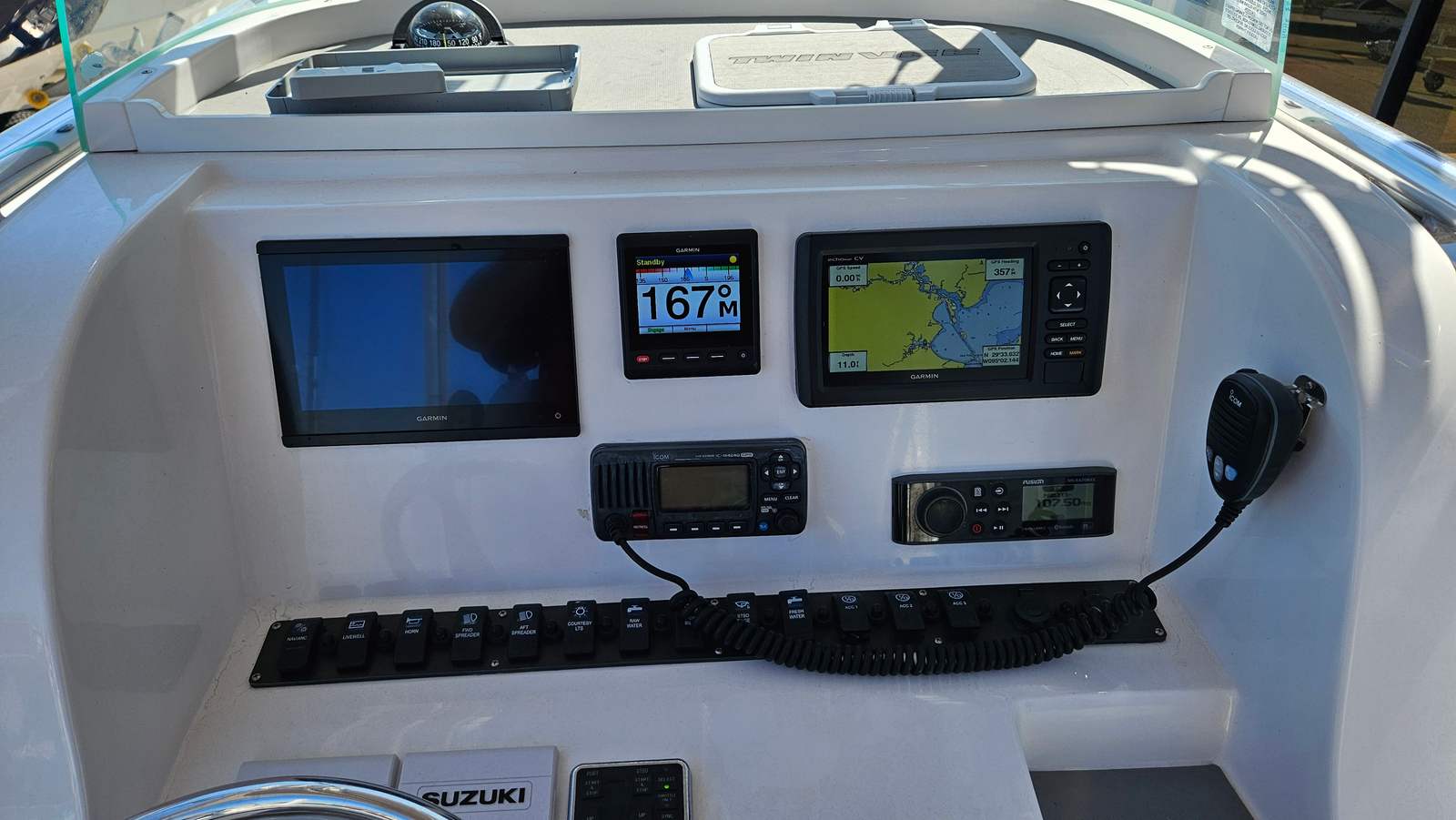 This Center Console boat truly shines in a variety of scenarios. For fishing enthusiasts, the combination of the Minn Kota I Pilot trolling motor, outriggers, and advanced Garmin electronics creates a formidable fishing platform capable of tackling everything from inshore species to offshore game fish. The spacious deck and stable ride make it easy to move around and fight fish, while the ample storage keeps your gear organized and accessible.Families and groups will appreciate the comfortable seating, smooth ride, and entertainment options provided by the Fusion stereo. The boat’s layout encourages socializing and relaxation, making it perfect for beach outings, island hopping, or sunset cruises. The windlass anchor allows for easy stops at your favorite swimming or snorkeling spots, while the T-Top ensures everyone stays cool and protected.For those who value adventure and exploration, the Twin Vee 260 Viva’s trailerability opens up a world of possibilities. Discover new lakes, rivers, and coastal destinations with the confidence that your boat is easy to transport and launch wherever your journey takes you.