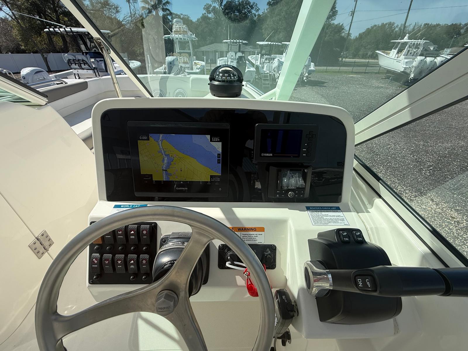 This 2023 World Cat 230 DC comes loaded with features that enhance both comfort and functionality. The dual console layout provides ample seating and protection from the elements, making it perfect for all-day excursions. The spacious cockpit is designed for socializing, with comfortable seating arrangements that invite relaxation and conversation. The helm is equipped with intuitive controls, ensuring that captains of all experience levels can navigate with confidence.The World Cat 230 DC’s 23-foot length provides generous deck space, allowing for easy movement and plenty of room for gear. The innovative catamaran hull not only improves ride quality but also increases usable space on board, making this World Cat boat for sale a practical choice for families and groups. Storage compartments are thoughtfully integrated throughout the boat, keeping your essentials organized and out of the way.