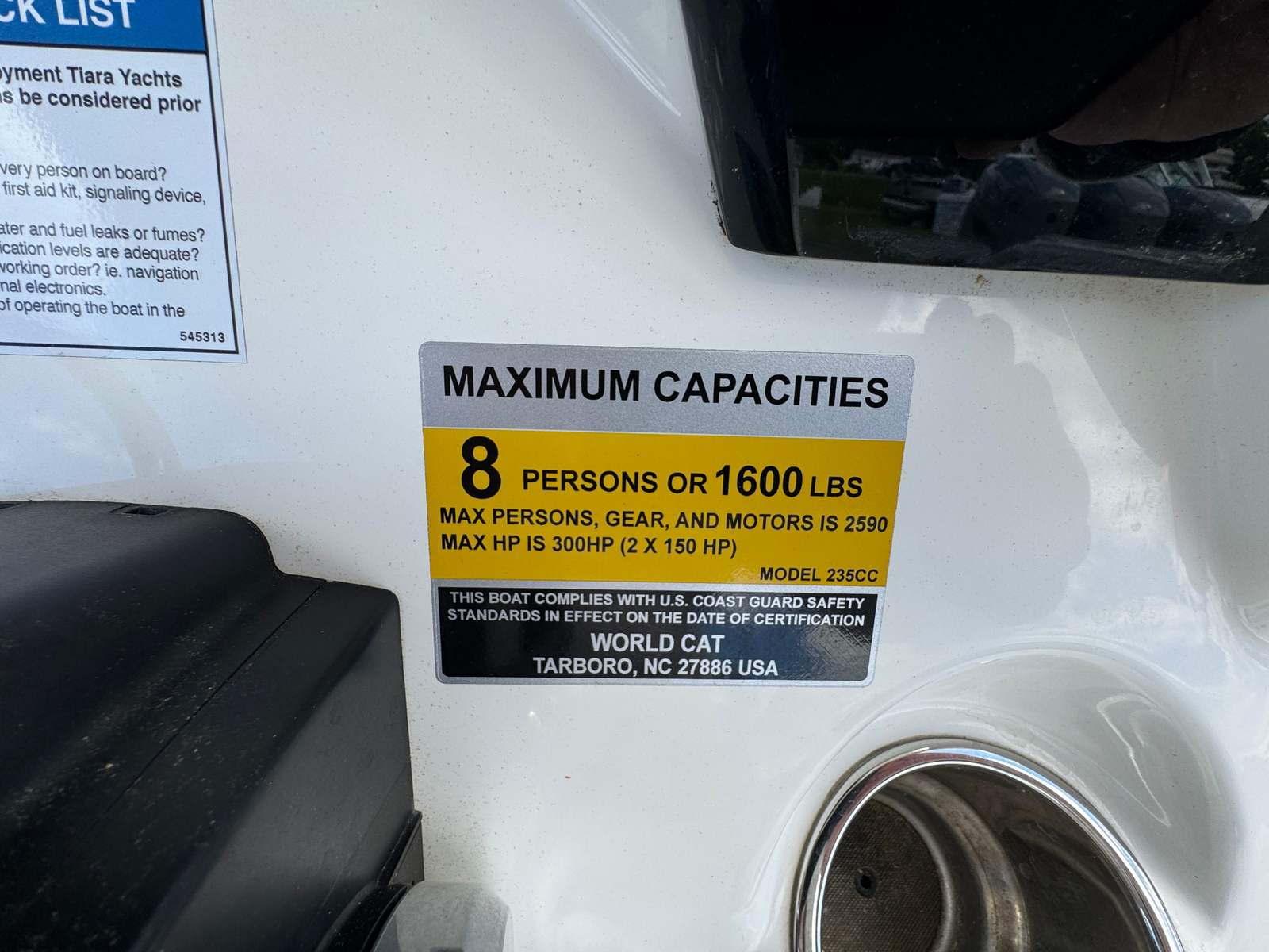 Equipped with two robust 150 horsepower engines, the **World Cat 235 CC** ensures an exhilarating and smooth ride every time you set sail. This dual-engine setup not only provides impressive speed but also enhances maneuverability, allowing you to navigate tight spaces and challenging waters with ease. Whether you're cruising at high speeds or enjoying a leisurely drift, the powerful propulsion system guarantees a responsive and enjoyable boating experience.